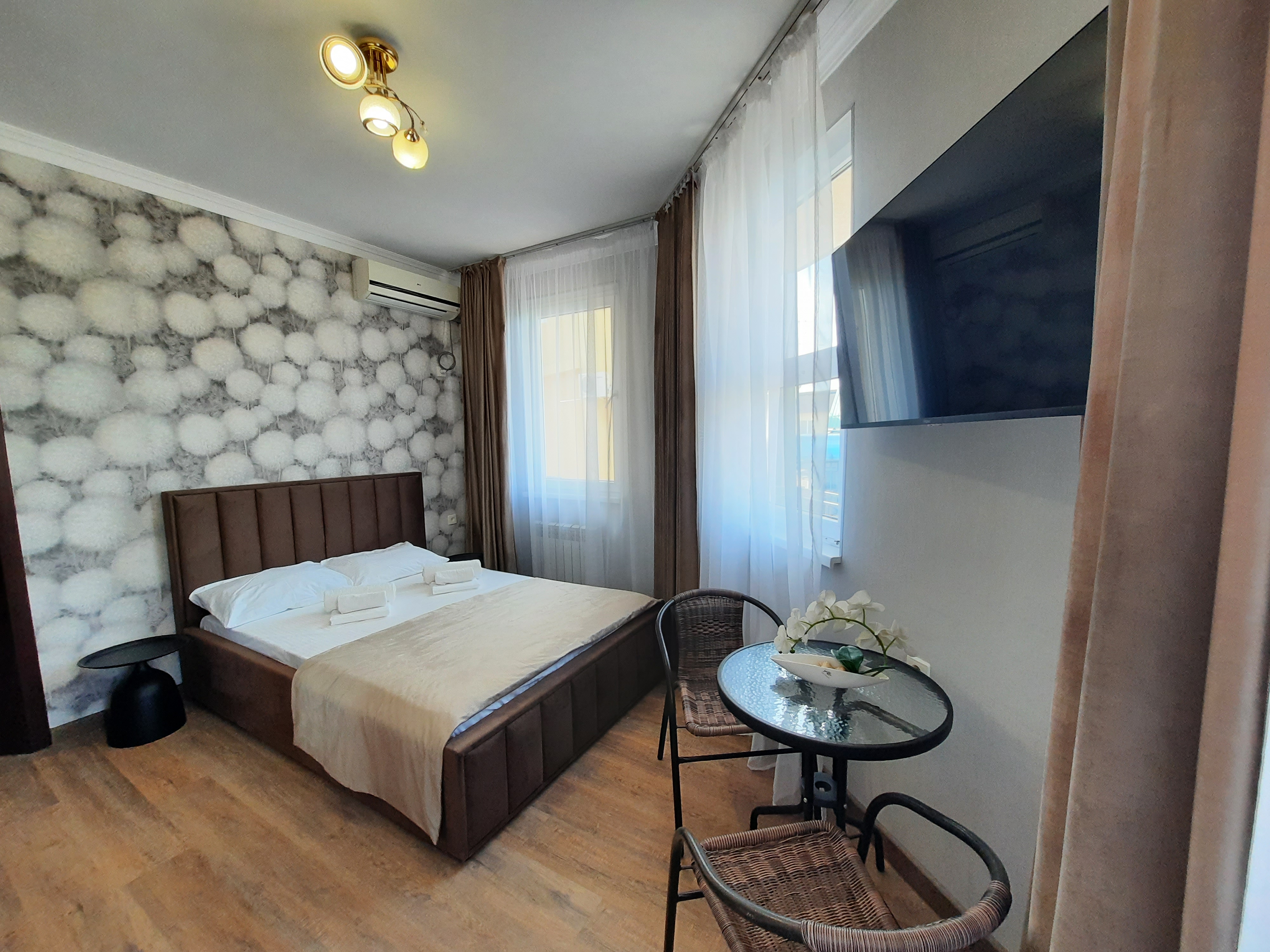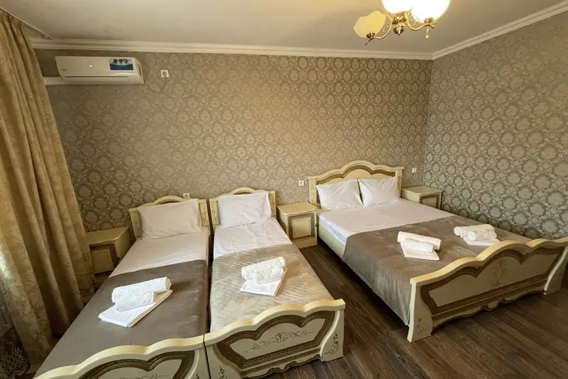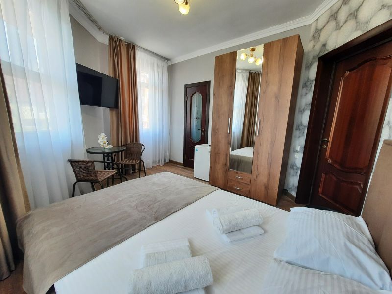 Большая часть номеров прошла реновацию в 2025 году. В распоряжении проживающих: 2-х, 3-х, 4-х, 5-ти местные номера, с хорошей мебелью. Душ, туалет, холодильник, телевизор, сплит-система. Все номера с удобствами и большинство с балконами и летней мебелью на них.