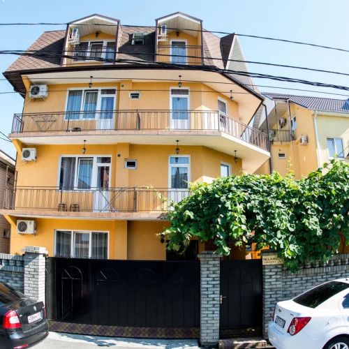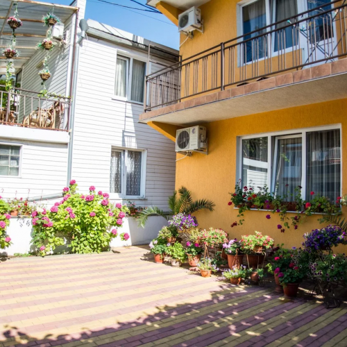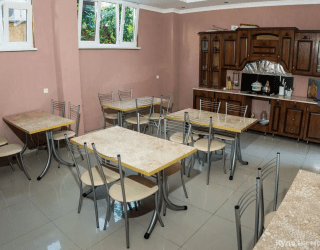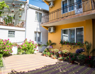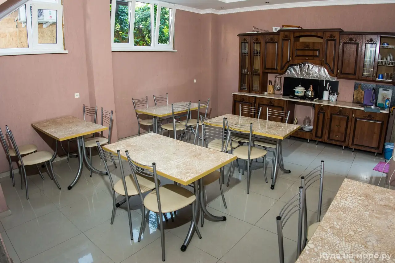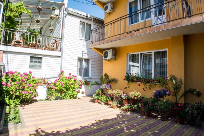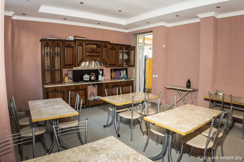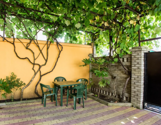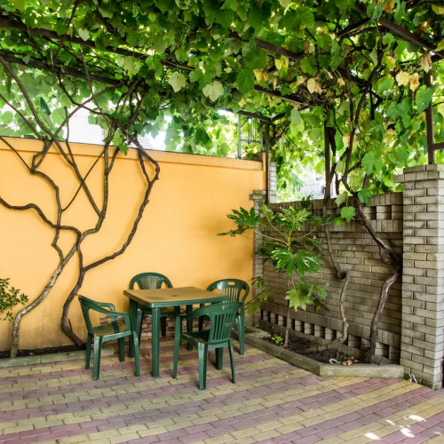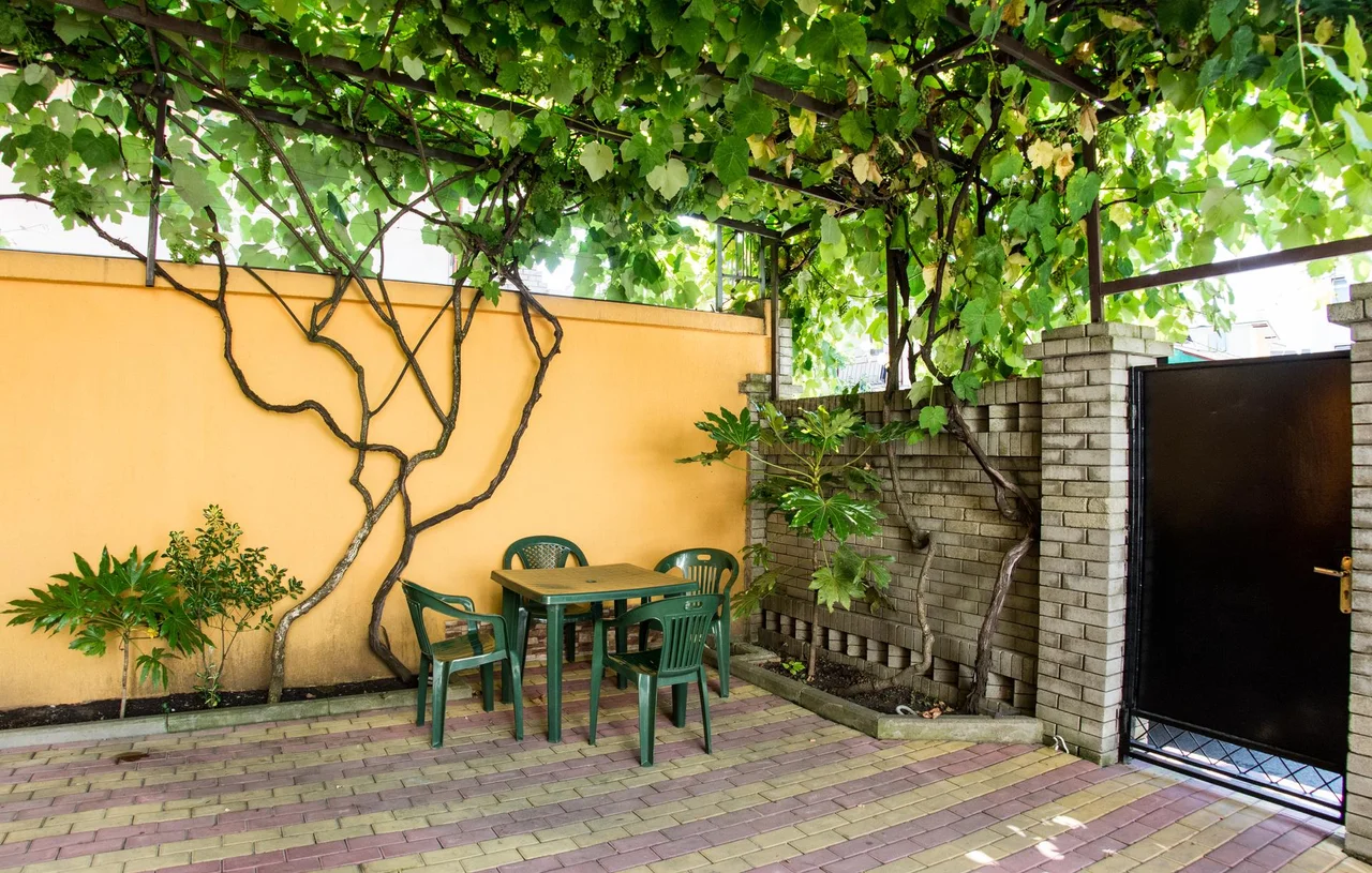 Гостевой дом имеет уютный зеленый двор. На территории оборудованы зона отдыха с мангалом, кухня для самостоятельного приготовления пищи.